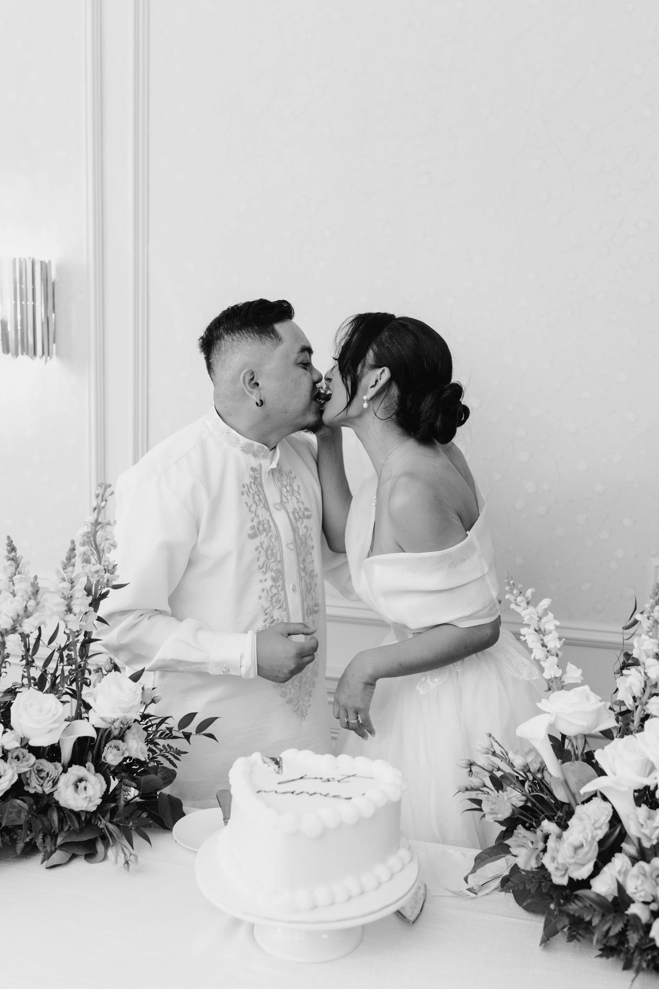 One of the most special things I had done for my wedding was commissioning Jillian to design my wedding dress. I had found Jillian on social media and had saved her page long before I was even engaged and knew that she would be the one to make my wedding dress. It was really important to me to have both traditional Filipino and modern Canadian elements to our wedding, as I wanted us to represent both sides of ourselves. This amazing dress that Jillian designed, patterned, and sewed together was an extension of that. I had asked if she could do a modern ballgown with some traditional elements inspired by the Maria Clara Filipiniana. I wanted the classic accentuated V neckline that highlighted my broad shoulders (something I used to hate) plus the romance of the airy bell sleeves. And wow, did she really deliver!